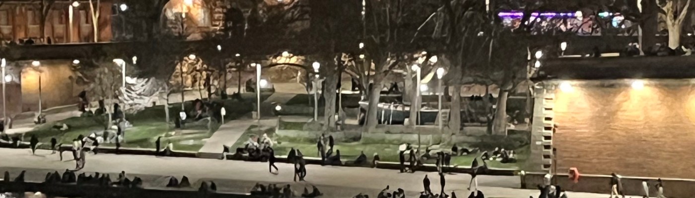 The walk home was lovely as usual with the different building lit up and reflecting on the river. Since the weather was lovely there were tons of people out and about. Another nice day in Toulouse.