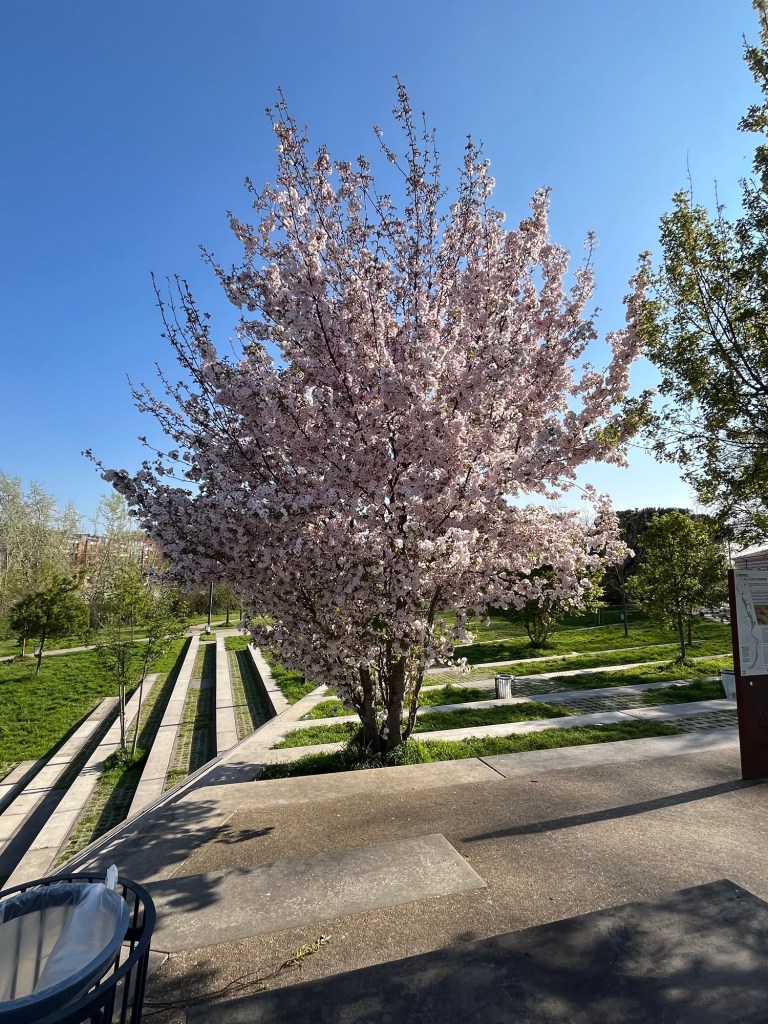I am sad that I will not see the Cherry Blossoms bloom in DC. It is an amazing and beautiful site to see the hundreds of trees in bloom. I have seen a few trees in bloom here so I am getting a little bit of that feeling here.