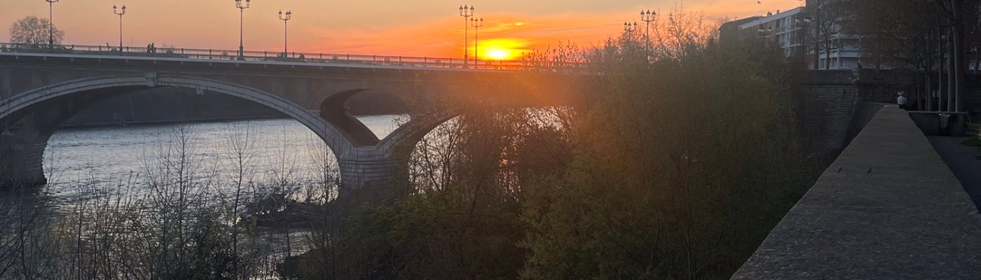 As I love the sunsets in Toulouse, I went out at 6:30 pm and sat on the wall in front of the apartment complex on the banks of the Garonne and watched the sunset. I cannot ever get enough of the sunsets here in Toulouse. I am definitely not a morning person and living on the east coast of the U.S., sunsets are more visible than sunsets, especially with the hills and building that block the sunset in DC.