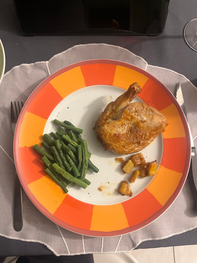 Final activity for the day was making dinner. I cooked the guinea fowl salad, and green beans. Both were very good.