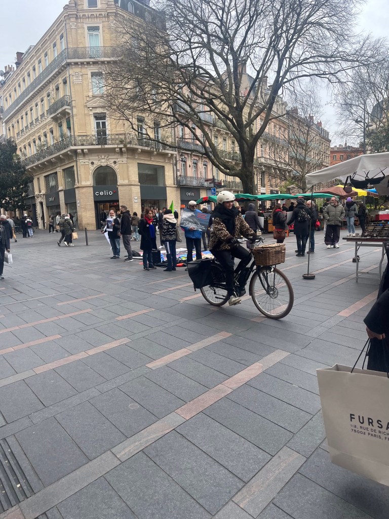I enjoy going to the Marché Victor Hugo on Saturday. There is definitely a lively atmosphere. Besides shopping, people come out to buy some bites to eat and drink wine during the midday. In the morning, I am guessing it is more coffee but I have seen some groups with bottles of wine even earlier in the morning. I really like the groups of people just hanging out at the out door tables and eating charcuterie, drinking wine and enjoying life and the weather.