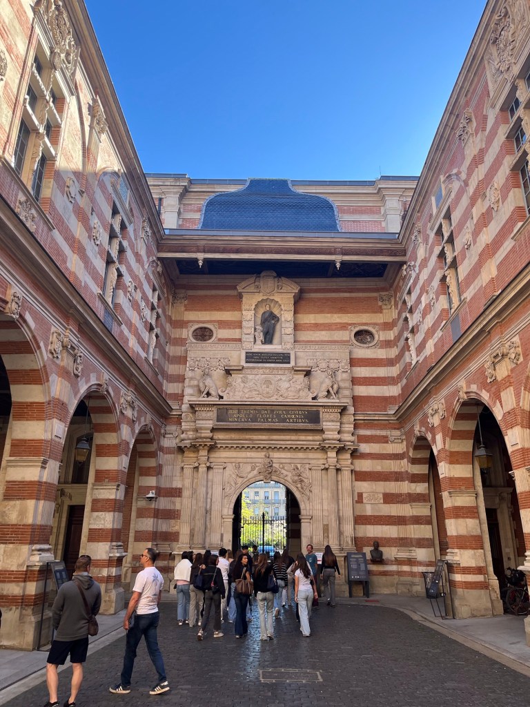 Kimberly saw that a tour group was going into the Capitole building. I was surprised as it is usually closed to tourists as official activities are going on in the building. It is where the city government meets and where weddings are held.