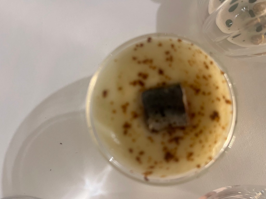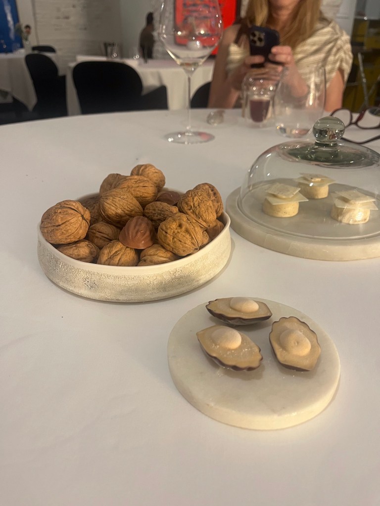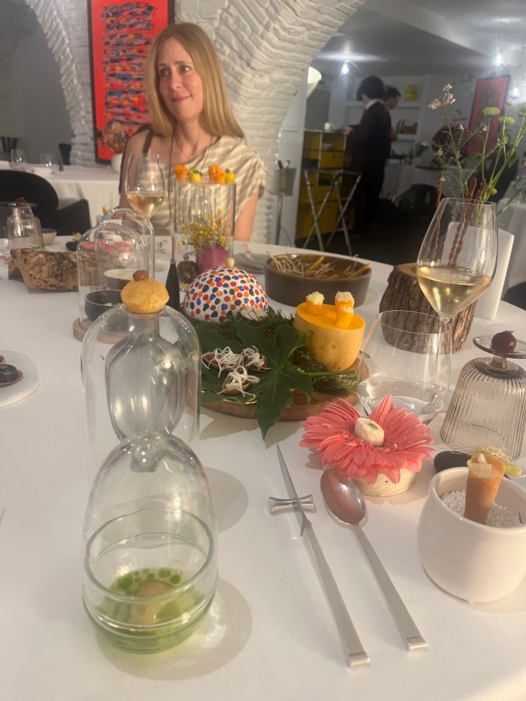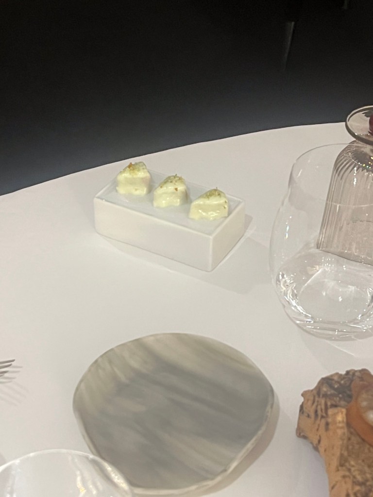 This was the hors d’œuvre selection. When they became laying the table with the bites that were included with it, we understood why the server said the tables were large. The Mise en scène included: