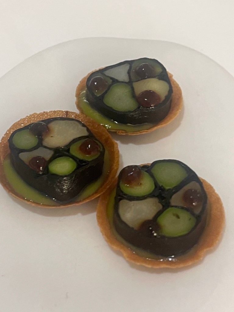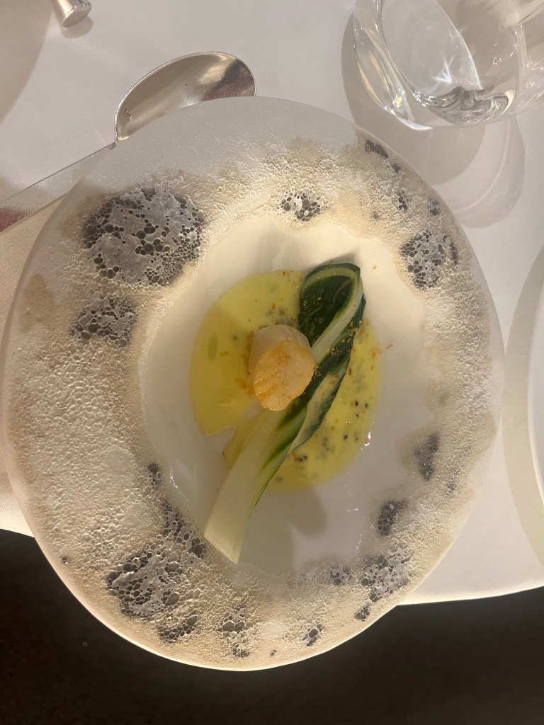 Scallop, chard kiwi, white butter of Buddha’s hand