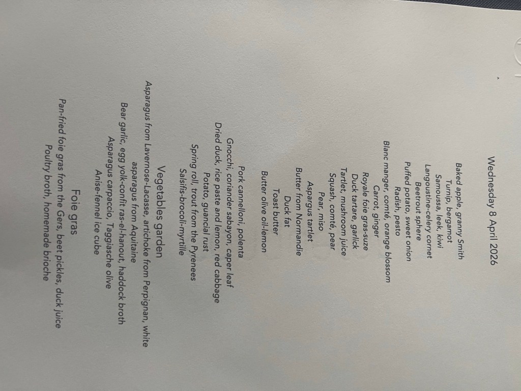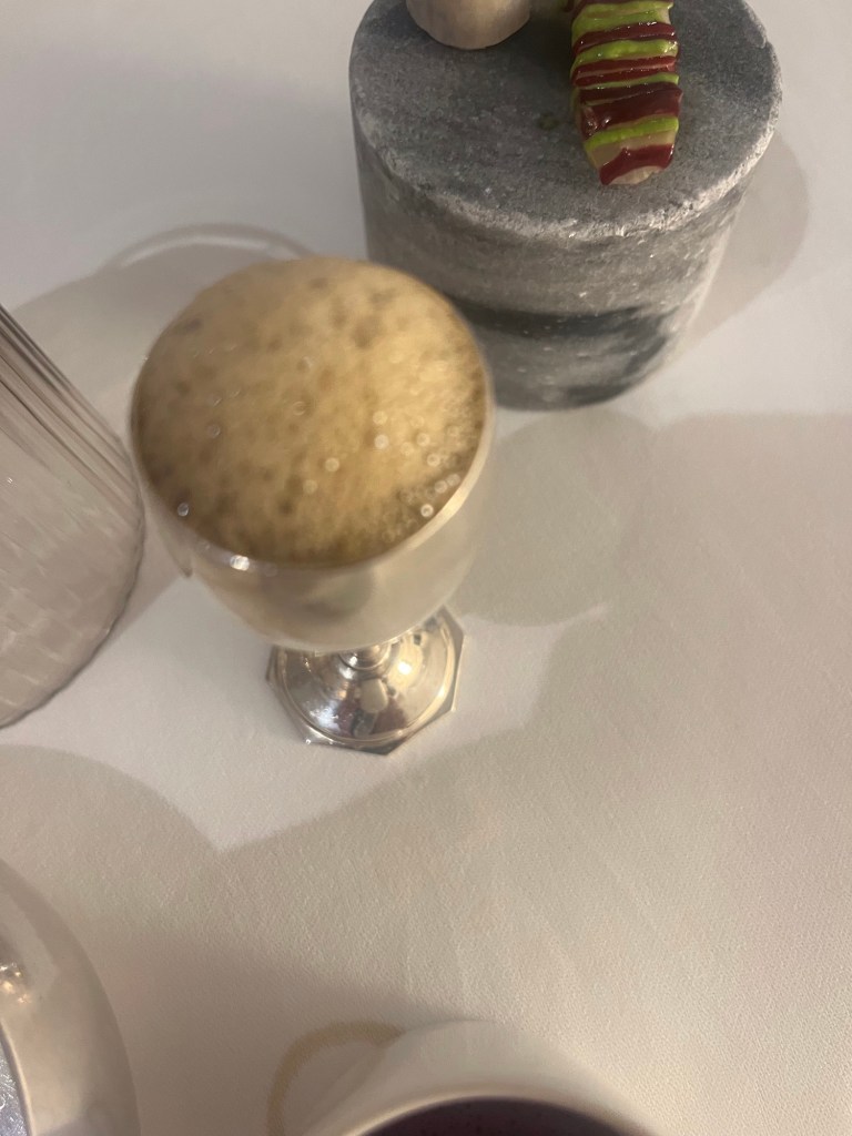 The restaurant is a prix fixed menu with two options, the Projection (smaller options) and the Spectacle (larger option). Our server (cannot really call the servers waiters as they are much more), explained the two options. The Projection he said takes about 2 hours to consume and the Spectacle takes about 3 hours. Since we had decided to indulge in the gluttony for the evening we went for the Spectacle. The server underestimated the time to consume as we were in the restaurant for 4 hours.