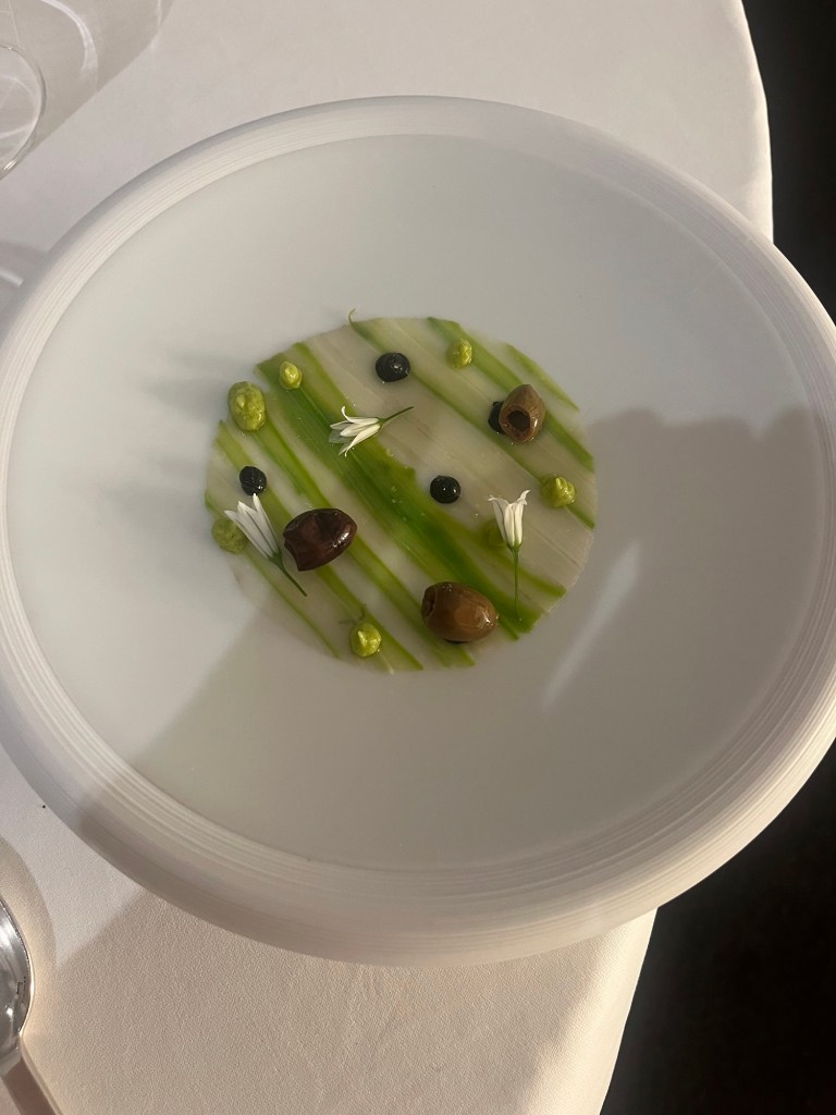 Asparagus carpaccio, Taggiasche olive – one of my favorites