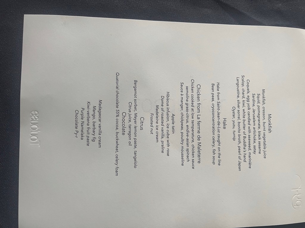 The restaurant was beautiful and visually engaging. The service was impeccable and friendly. There was nothing stuffy about the servers – they engaged with us and were mote than willing to answer questions. The food was unique, delicious and challenging. I liked almost everything served.