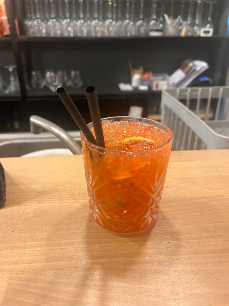I started the evening with a cocktail that Enzo whipped up for me. The liqueur base was mezcal. It had lime juice, strawberries and sugar all muddled. I was good as the acidity from the lime juice cut the sweetness of the strawberries.