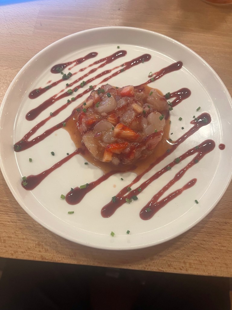 They gave me a free appetizer that was not on the menu again. It has become somewhat of a habit. Not sure if it is part of the lunch menu which was not consumed but it is still great. Tonight’s appetizer was shrimp tartar with strawberries. The tartar had some red onion in it so the spice and sweet was a great contrast. The sauce also had a hint to spice in it so make for some great flavor combinations.