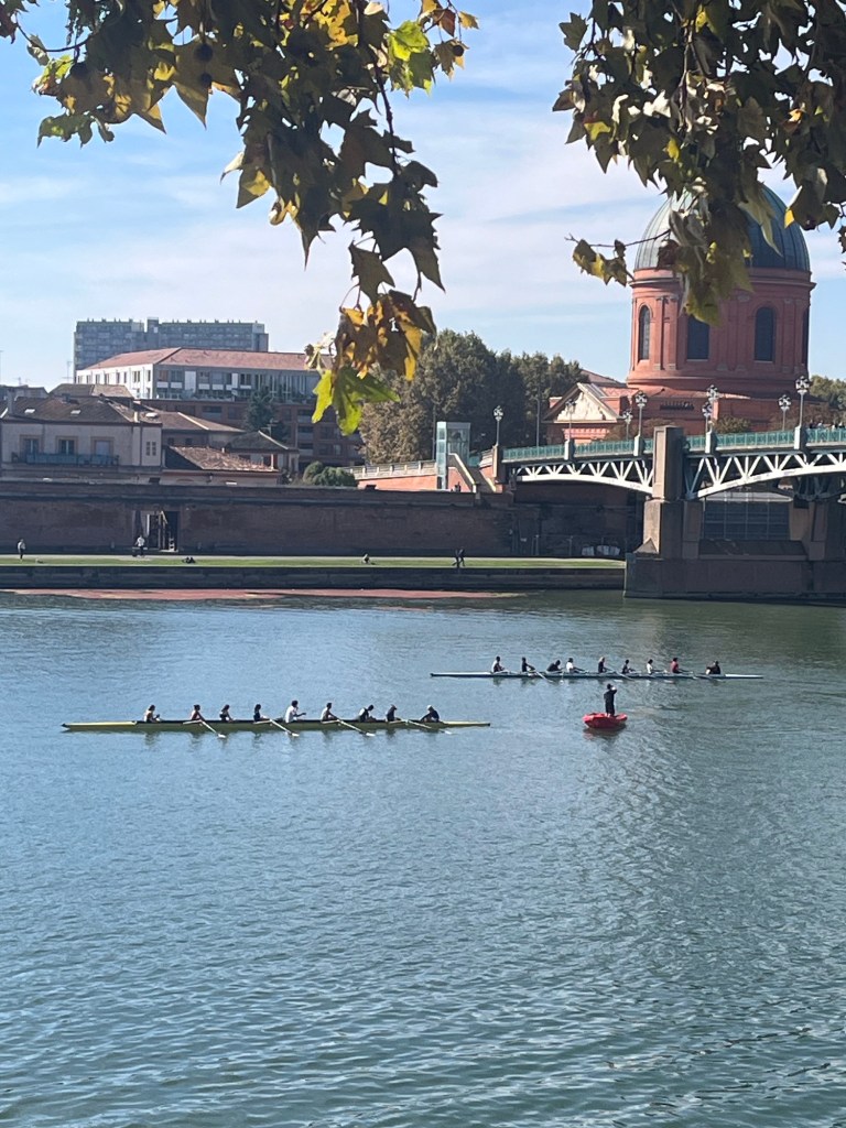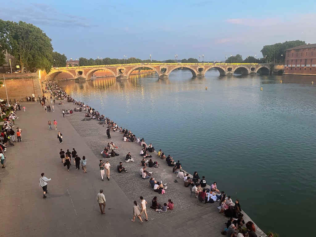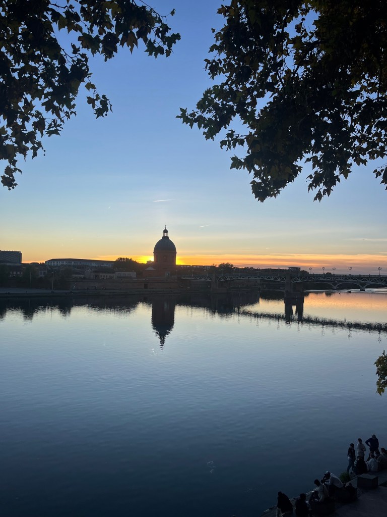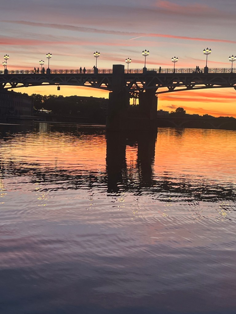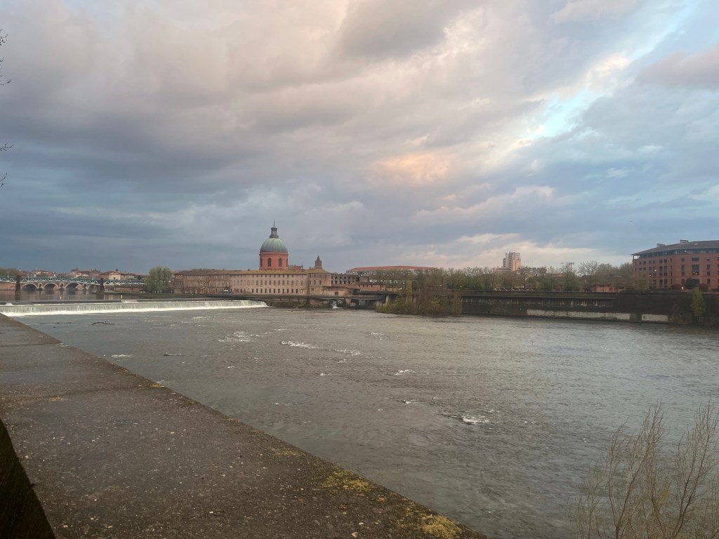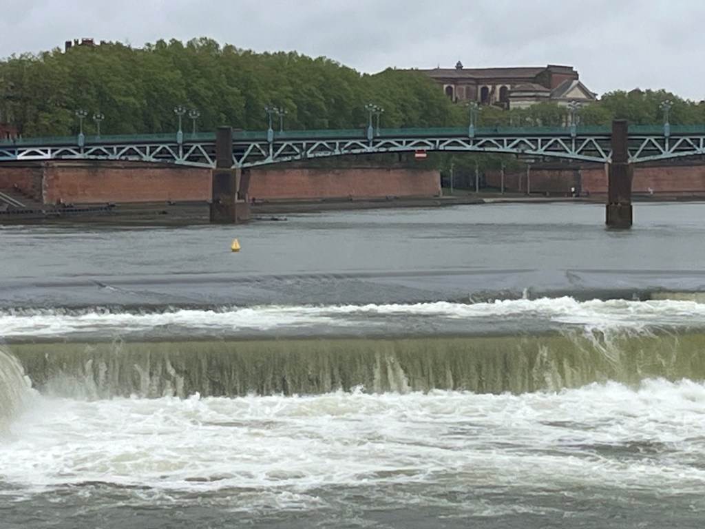 The river is an important part of life here and has become for me. I try every day to walk along the river. I love the sound of the river going over the groin (little waterfall) especially when the river is running high. I like the changing color of the river depending on its level and whether it is running high. When the river is calm and you can see the sky, buildings and clouds reflected in the surface. When the river is running fast, you can feel the strength and energy of it. Having read some of the history of the Toulouse, the Garonne has played a great part in its development and commercial life. When that came to an end, the city transformed the river into a lively social center of the city.