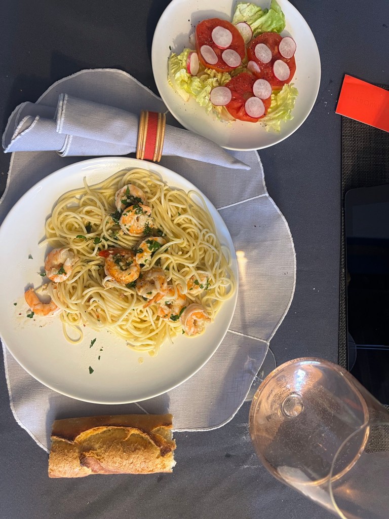 Since it was Wednesday, I cooked dinner. I made shrimp scampi which was delicious. I am getting better at cooking on the induction stove and using more ingredients.
