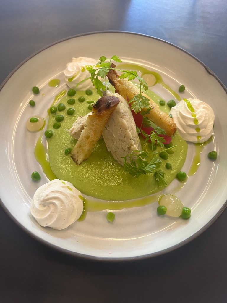 I had my usual lunch at Terra Tolosa and it was even better than normal. The starter was not new but was excellent. Mackerel fillets with peas and pea soup. The presentation is always stunning.