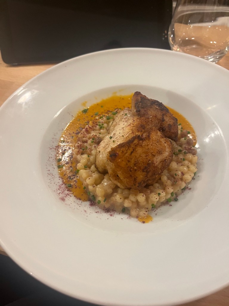The food as usual was excellent. I had monkfish with fregalo which is a past from Sardinia.