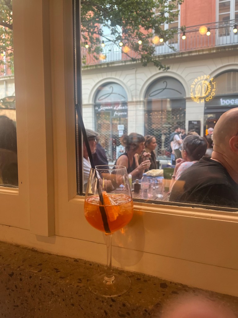 When I got to La Reserve, the friendly manager, saw me and asked how I was. She knows I like the Spritizes so placed my order and brought it over. She gave it to me on the house. It really surprised me but I was grateful for the gesture. The Spritzes at happy hour are smaller and I usually order two. I ordered the second one and they gave that one to me for free as well. The other server I see usually brought it and shook my hand and welcomed me. It is nice to be known by the servers and treated so nicely. It is part of what makes my stay in Toulouse so nice.