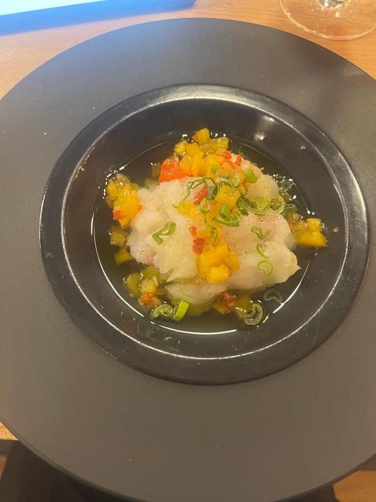 Dinner at Le Panache was good as usual. My first course again brought out to me without ordering it was ceviche with pineapple and peppers. The blend of flavors was terrific. The fish was prepared perfectly.