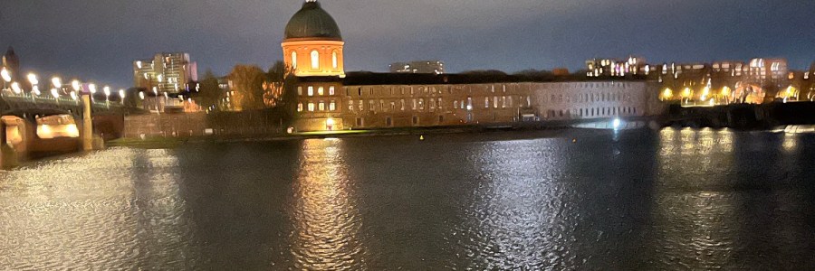 I return to Alexandria on Tuesday (tomorrow) after another wonderful stay in Toulouse. The city captivates me. I love walking by the river every day and hearing the water rush over the man made ford from the 1700s. I love the light at sunset and how the city turns pink. The light is just amazing!… Read More Last day for this episode in my next chapter